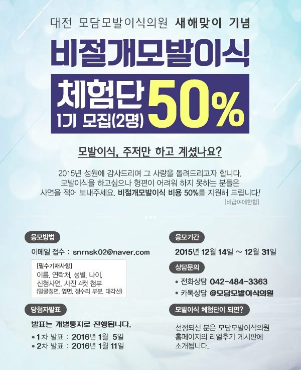 비절개모발이식 비용 50% 지원 기회 놓치지 마세요.